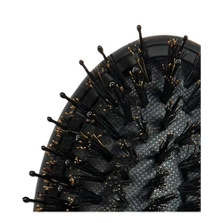 The unique structure of the boar hair bristles carries the hair’s natural oils from the scalp to the end of the hair shaft. By coating each strand with a very small amount of sebum, the brush repairs dry hair reduces frizz, and adds lustrous shine, while the stiff nylon ball-point bristles massage the scalp, increase blood circulation and detangle the hair.