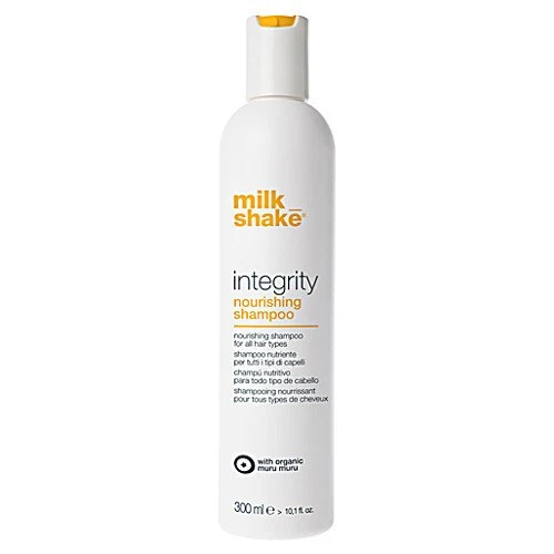 milkshake integrity nourishing shampoo, with its salt- and sulfate-free formula, cleanses hair gently and contains organic muru muru butter to help maintain hair color. milkshake integrity nourishing shampoo nourishes, conditions and moisturizes instantly while eliminating frizz, leaving hair soft and radiant. Organic muru muru butter is extracted from the muru muru seed, and is rich in fatty acids that have a nourishing, soothing, and moisturizing effect on hair and skin. It also contains vitamin A to repair, nourish and strengthen hair.